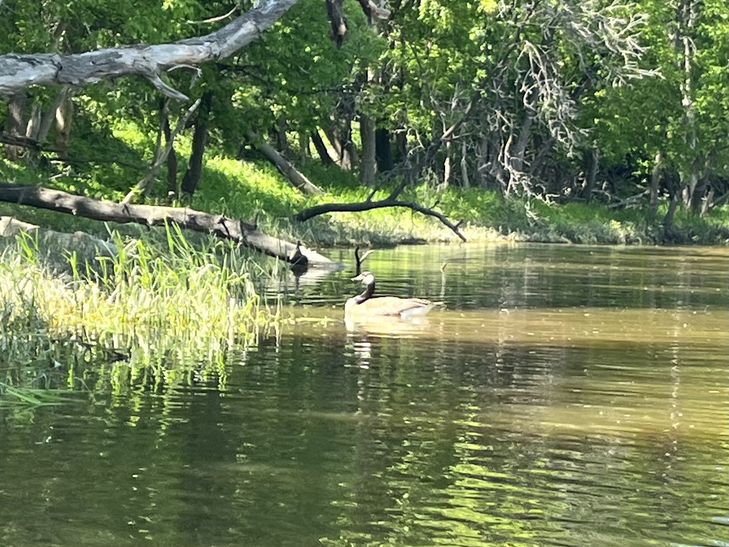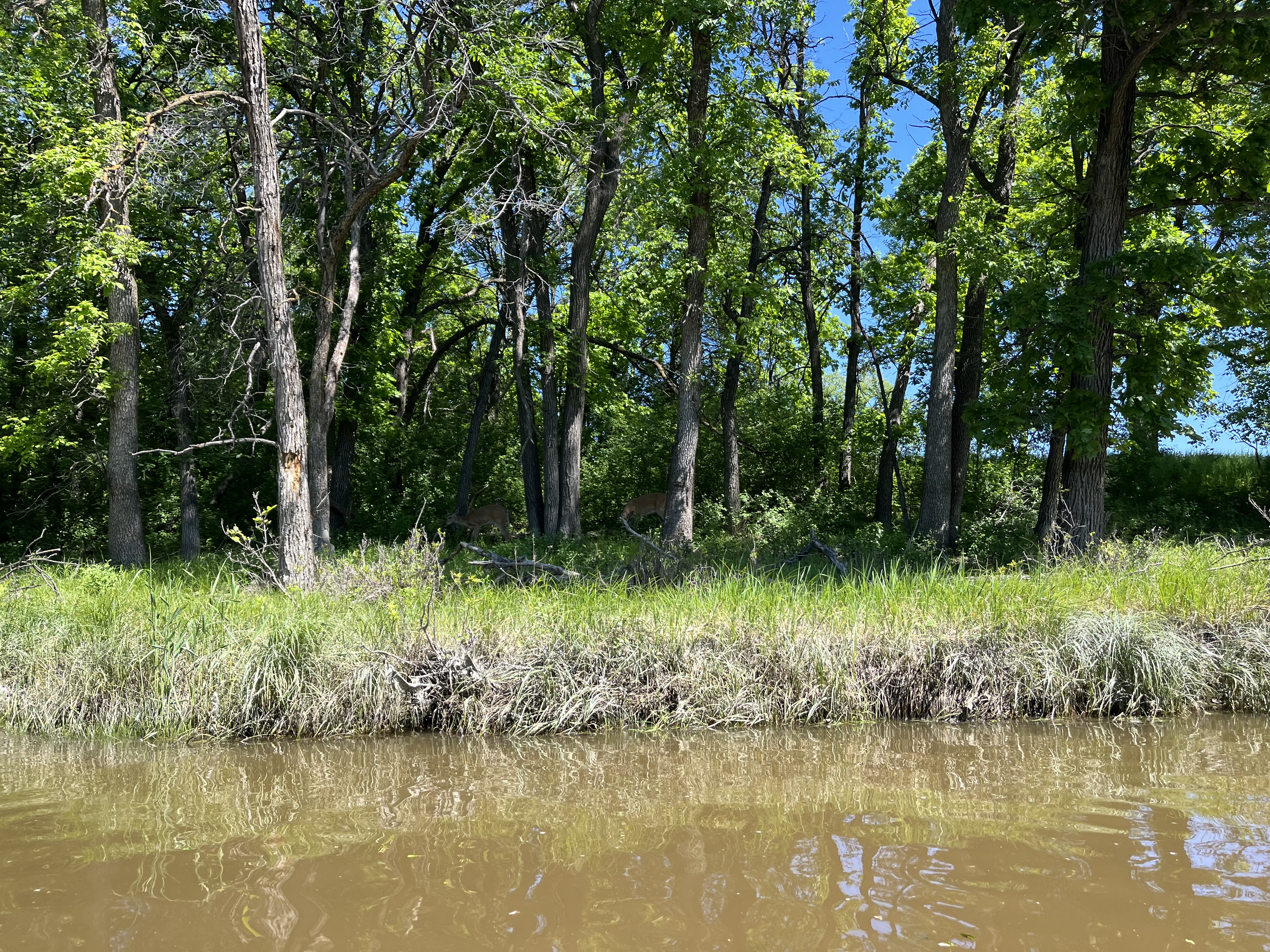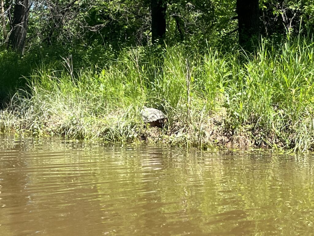 We saw several deer and turtles, as well as ducks and Canadian geese. One deer swam across the river just ahead of us and, after reaching shore, shook herself dry like a dog.